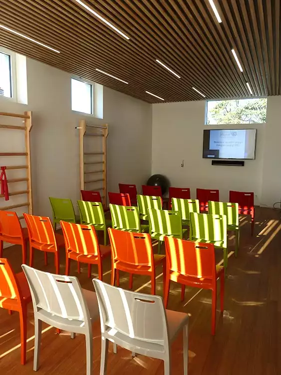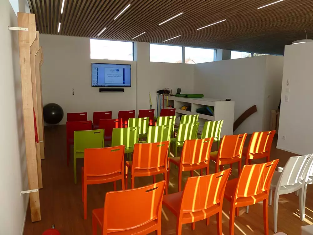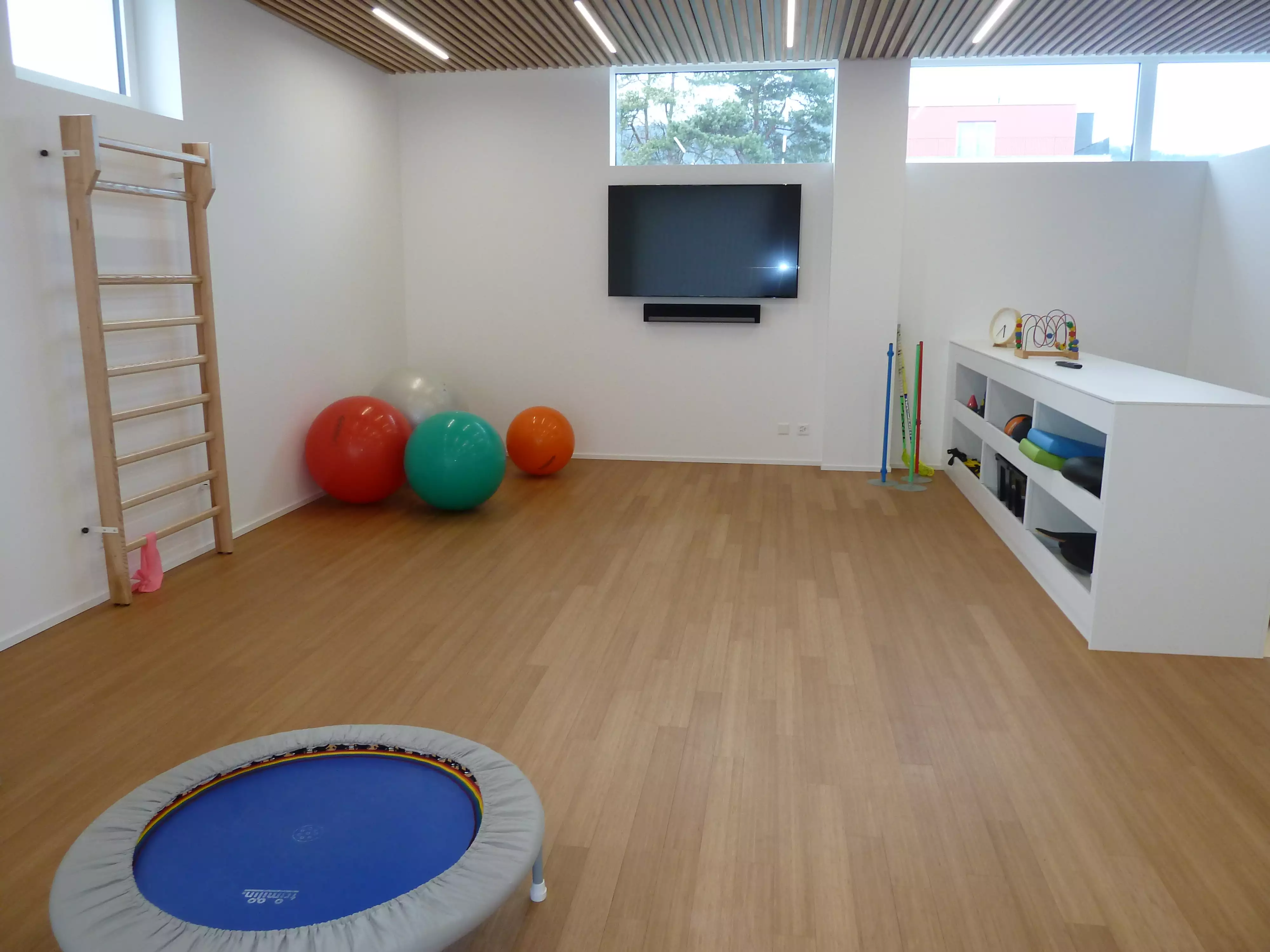 CPTS s’étend sur près de 300 m2 au rez-de-chaussée du bâtiment. Il offre une aire d’accueil/réception et salle d’attente, 7 cabines de traitement fermées, une salle de gym/proprioception qui peut être utilisée comme salle de conférence, une salle de fitness médical ainsi qu'un vestiaire et un WC/douche aux normes handicap.